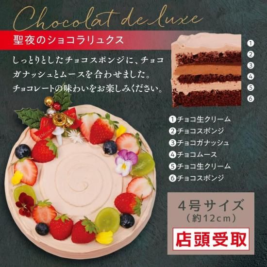 【店頭受取限定】クリスマスケーキ予約【聖夜のショコラリュクス】4号サイズ